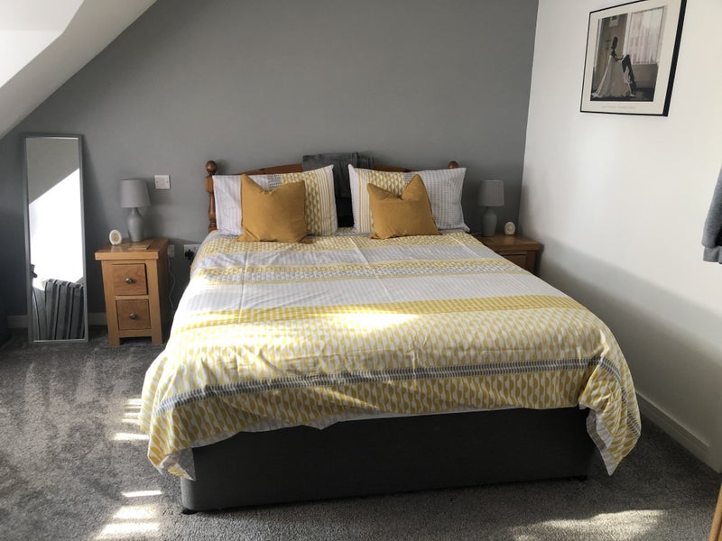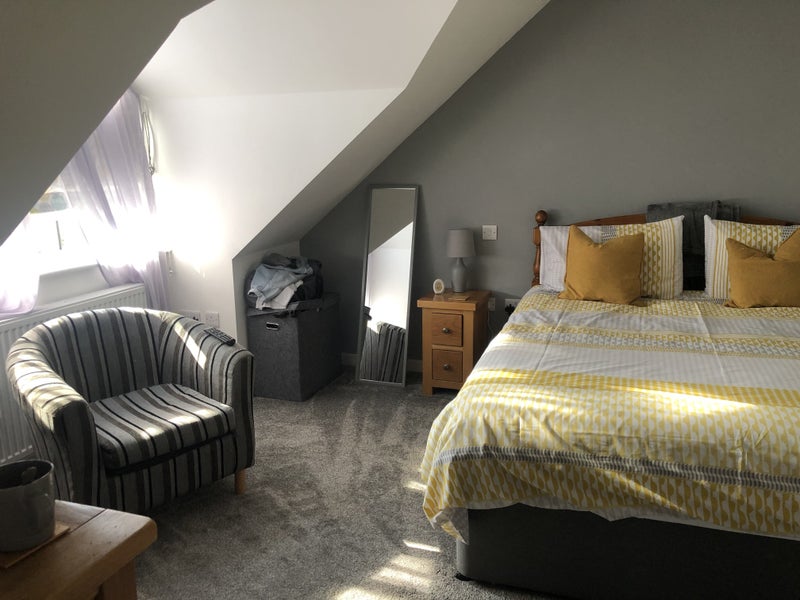 Recent loft conversion in lovely Oxfordshire village, close to Banbury and Oxford is approximately 24 miles. Good size double bedroom nicely decorated and furnished, has a double bed, double wardrobe, drawers and an armchair, also has a lovely en-suite. Use of a sitting area with dining table and chairs, small table top fridge/toaster and kettle, which is shared with one other person. There is a shared utility room with washing machine, fridge/freezer, George foreman grill and griddle and combi oven and hob.