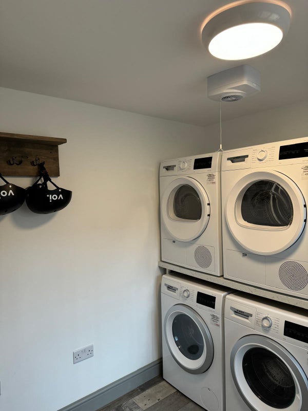 Enjoy an open-plan kitchen/living area with everything provided – washing machines, dryers, crockery, and cookware.