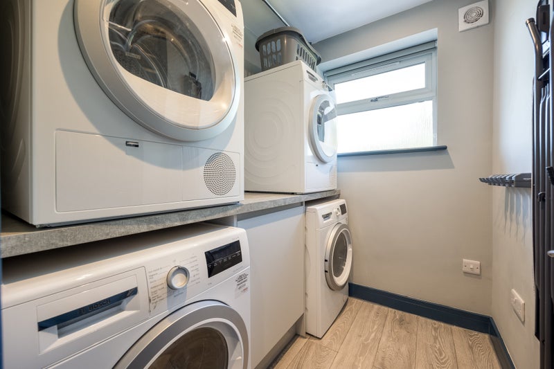 Enjoy an open-plan kitchen/living area with everything provided – washing machines, dryers, crockery, and cookware.