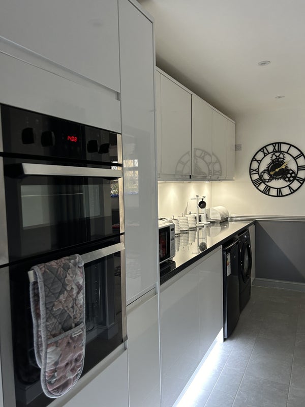 The rooms comprises of wardrobe, large chest of drawers, bedside table mirror lamps, and recently decorated. TV is also provided on the wall. The kitchen is fully equipped with your own fridge/freezer, dining table and four chairs, oven/grill, hob, and your own cupboards.