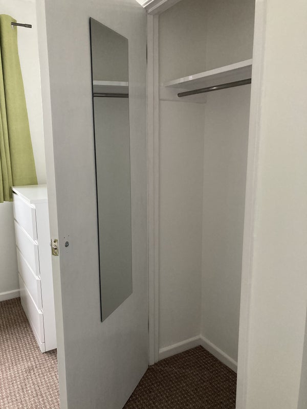 *Fitted wardrobe, large chest of drawers, small chest of drawers, desk and chair, mirror, lamp