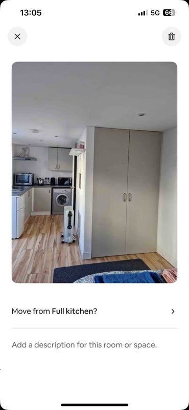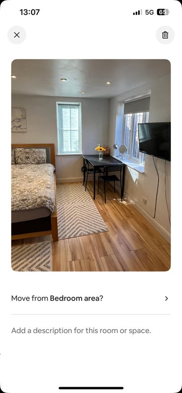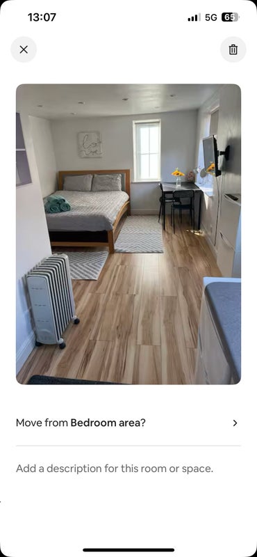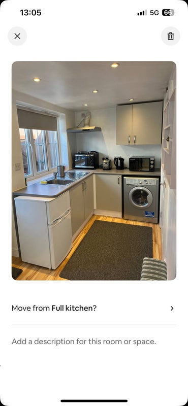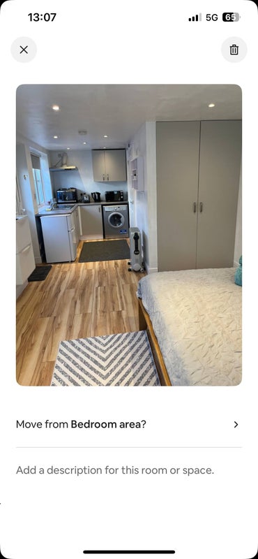 Stylish build self contained studio with fully fitted kitchen, fridge, washing machine, microwave, toaster, shower room (with toilet, sink and power shower). King size bed bed, dining table with chairs. Modern decoration throughout.