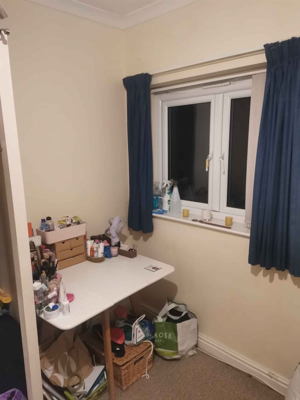 The room comes with a wardrobe, desk, bedframe and mattress along with shelving built in. It keeps very warm with double glazed windows and is right next to the bathroom. We have two bathrooms (one of which has had a brand new shower built in and both have recently been repainted) and a WC so there's never any fighting for bathrooms first thing in the morning!