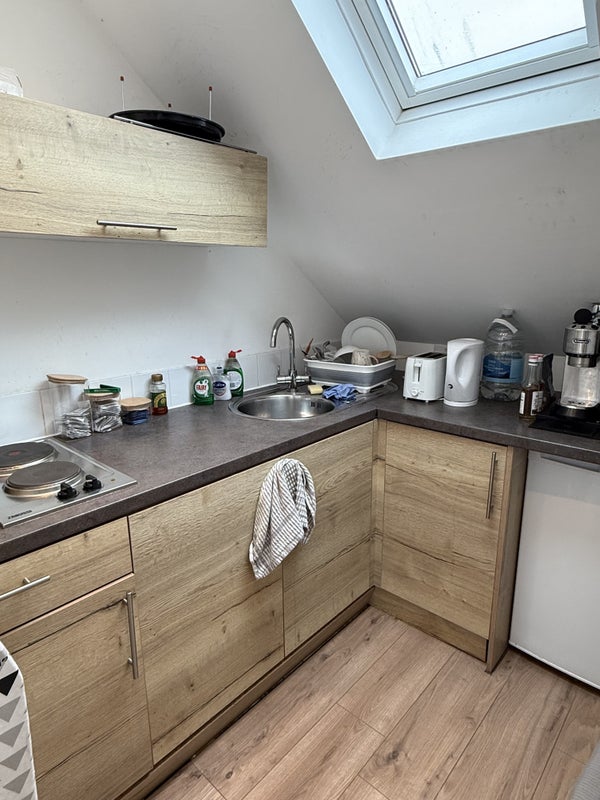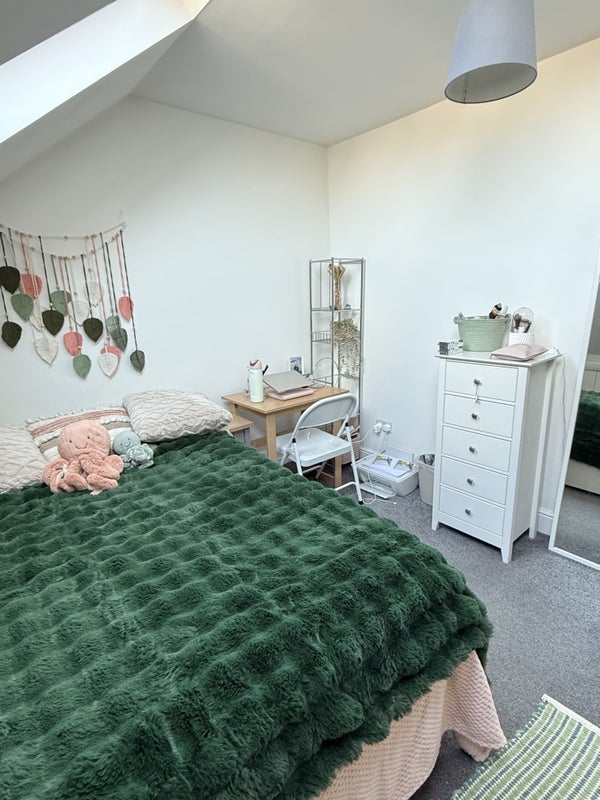 It’s an 8 bed house with 3 bathrooms plus an additional toilet with a shared kitchen and kitchenette. This room is on the top floor, only sharing a bathroom with one other person with access to the kitchenette on the top floor. There is off road parking with supermarkets and a gym only a 10 min walk away. Buses to city centre are a 5 min walk away.