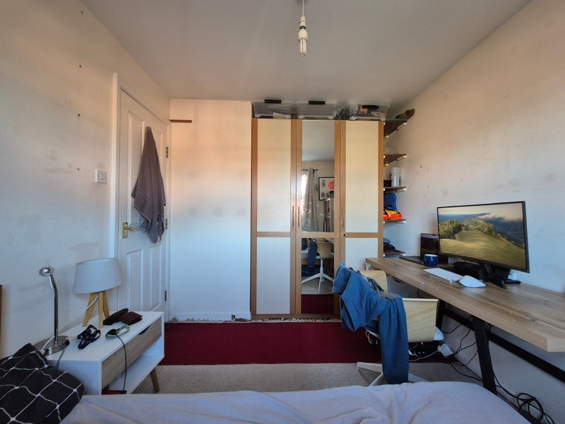 The room (first two pictures) is on the top floor, and the bathroom is shared with one other housemate.