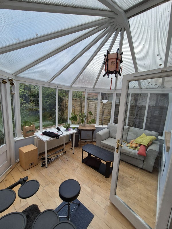The house features are large kitchen, communal living room, as well as a conservatory, a backyard garden, and a spacious garage.