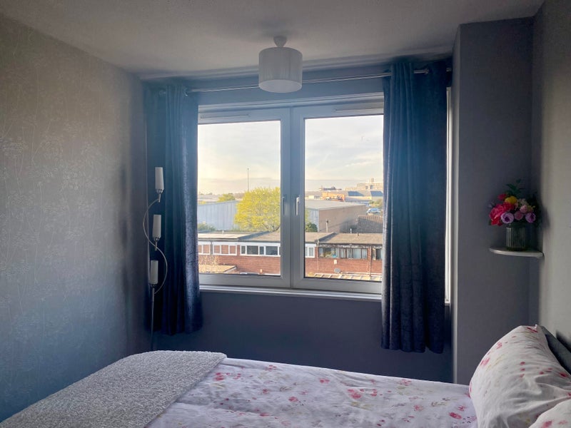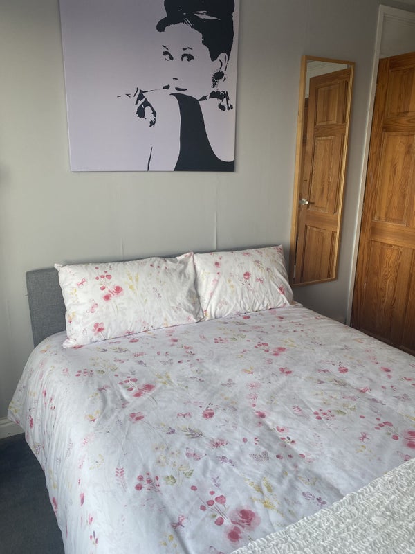 I have a fully furnished large double bedroom to rent. Brand new double bed with brand new memory foam mattress. Built in cupboard with both hanging rail with shelf above. Equivalent to 2 double wardrobes. The room isn’t en suite but it is nearest to the bathroom. Huge windows to let in plenty of light. Quiet household, just me and my elderly cat.