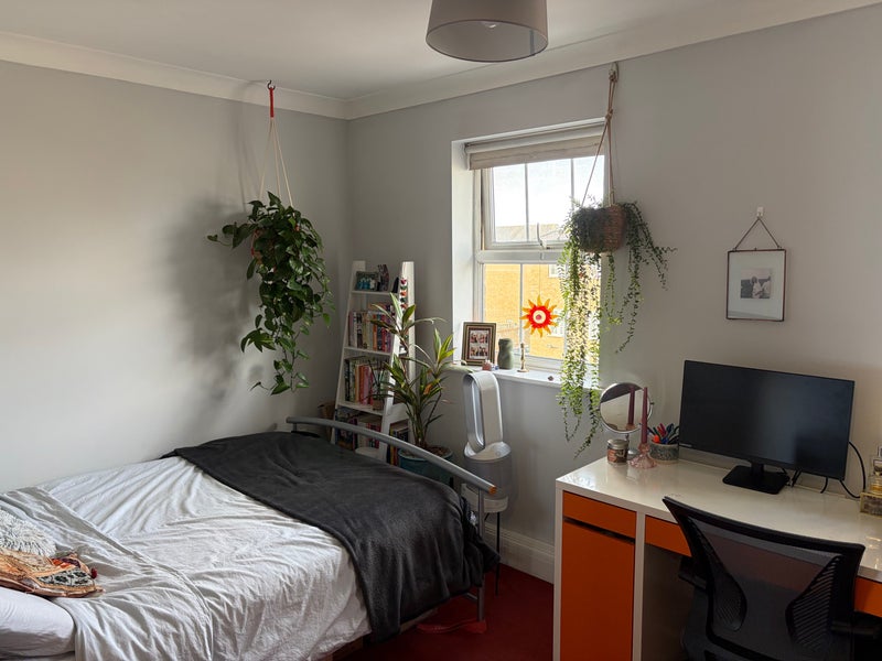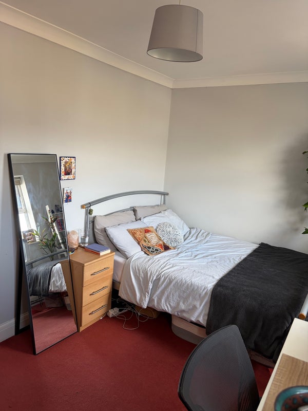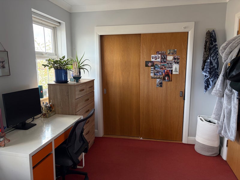 The room is on the top floor and next to a bathroom that is shared with 2 others. It comes with a bed, desk, chair, chest of drawers and bedside table. There’s plenty of storage and the room gets lots of natural light!