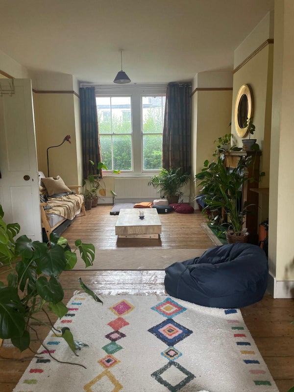 The house has immaculate vibes and will impress anyone you bring over. The living room is large and even more plant-filled (plus room for yoga mats). The kitchen is full of character and comes with a dishwasher, washing machine and a separate dryer. The garden has fairy lights, candles, hammocks, a projector, a pond full of frogs, and vegetable patches that have fed us kale and courgettes in summers past.
