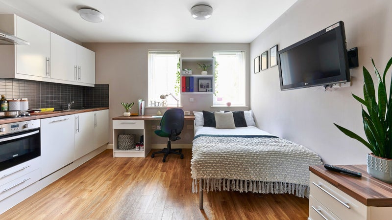 Oxford Host the Mews (Cowley, OX4 2SY) student apartment studio sublet, all official procedures and official contract (pictures are from the official website, the actual room is larger).