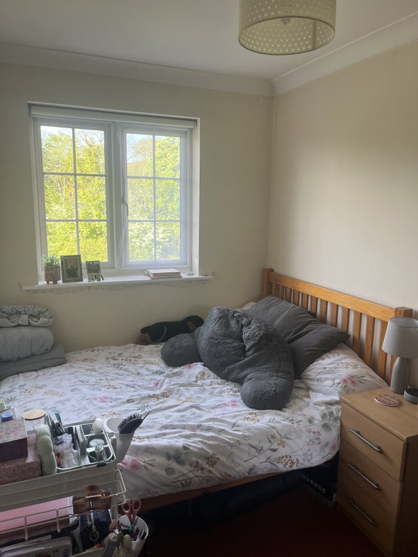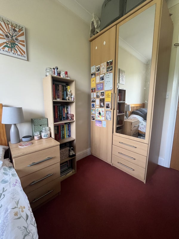 The room is available from the end of June. It’s on the top floor of the house and comes with a double bed, bedside cabinet and large wardrobe with drawers and a full length mirror. The bookcase is not included. There’s lots of storage space under the bed. The bathroom is shared with the two other housemates on the top floor. I’ve been living in the room for 2.5 years and am moving to a different room in the house as one of the other housemates is moving out of Oxford.