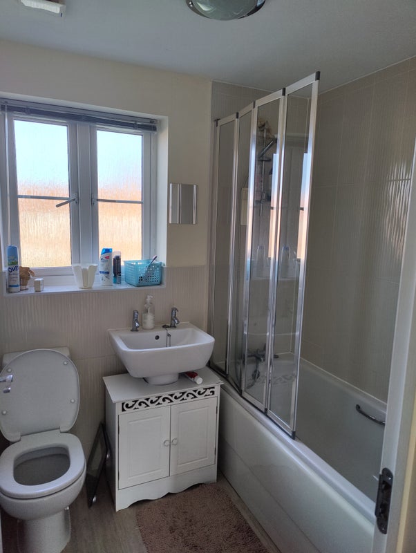 The house is very spacious and clean, with a large kitchen and living room, both of which will be shared. The pictured bathroom will be shared with one other person. It is currently occupied by two females. We are very easygoing and sociable, and want our new lodger to feel at home. The house has a garage which can be used for small storage, e. g. a bike or suitcase, and contains an additional large freezer. We are looking for a responsible person who is also quiet, clean, sociable, and considerate. I can arrange a virtual or in-person viewing of the house. The property has a cleaning rota to ensure the house is regularly cleaned and kept tidy by everyone.