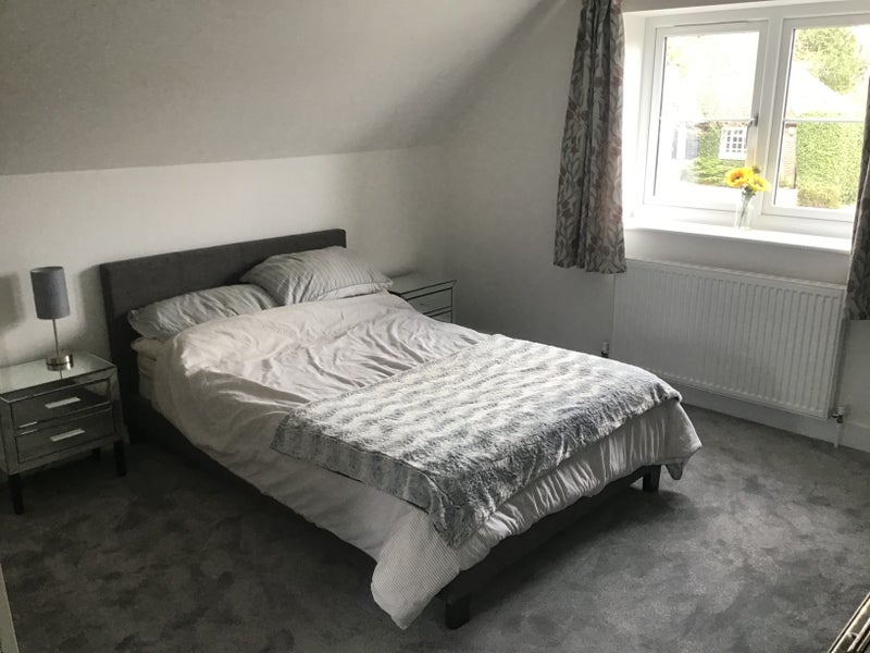 We have large bedroom with its own large shower room in new nice quiet house lovely garden off street parking single occupancy only shared kitchen nice pub in walking distance lovely walking and cycling all around the area close to M40 we do have small dog