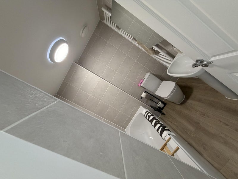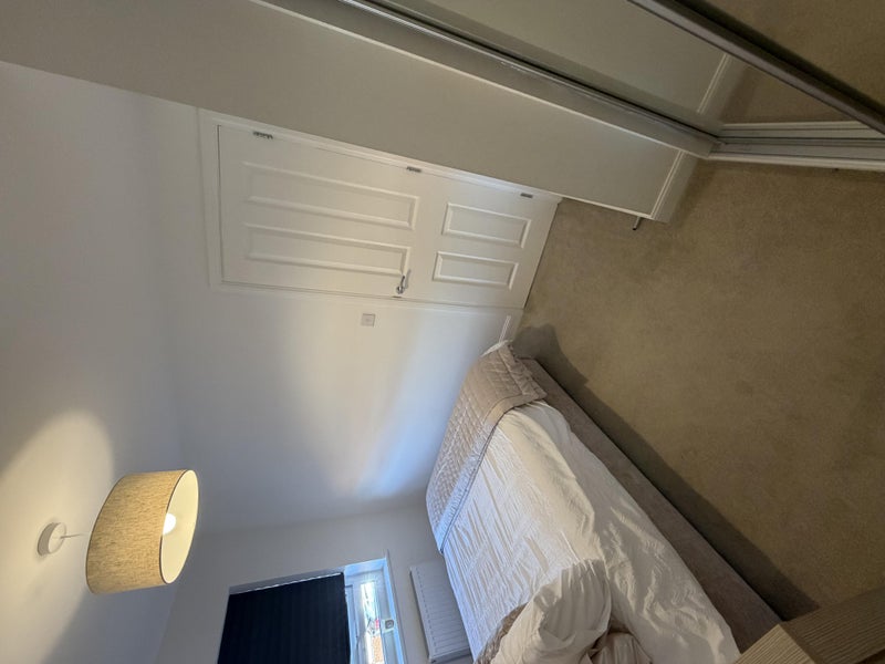 Choice of either 2nd bedroom with use of family bathroom which has shower over bath ( I use v rarely if I have ensuite, no one else using) £ 750pm or master bedroom with own en-suite £800pm. Both have built in wardrobes. Master room also has chest of drawers with Tv on it. ( no pics currently of master as I’m decorating)