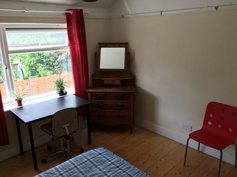 ROOM: This cosy bright room has south facing windows overlooking the garden. It is an upstairs room and comes furnished with a double bed, a wardrobe, chest of drawers, chair and a table.