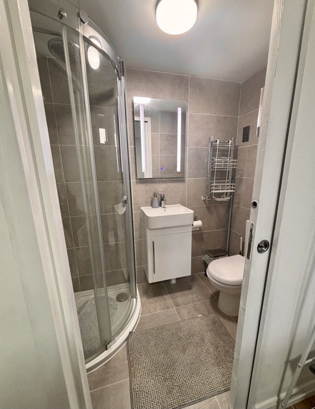 Ensuite: Modern standing shower, toilet, and basin attached to the room