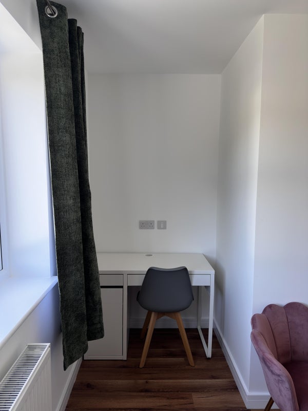 Each spacious bedroom has been thoughtfully designed to a high standard, featuring a comfortable bed, built-in wardrobe, dedicated workspace, and additional, private loft storage. Every room benefits from a private en-suite bathroom, offering comfort and privacy. The property also features hard flooring throughout, plenty of natural light, and blackout curtains.