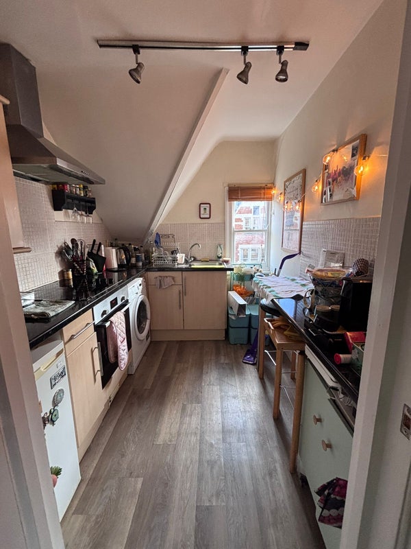 The two rooms available are both on the top floor, and share a kitchen (in the photo). Bathroom shared with a third person. Basically it's almost like a separate flat at the top of the house, with access to garden and downstairs living room.