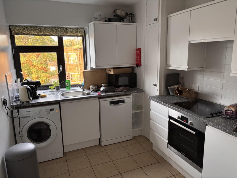 It’s a double room with a desk and storage space, and we have a spacious and bright living room, fully equipped kitchen and clean bathroom. On street permit parking can be organised.