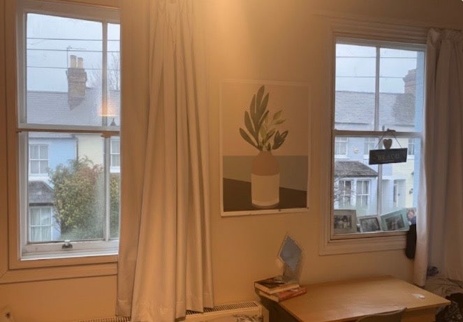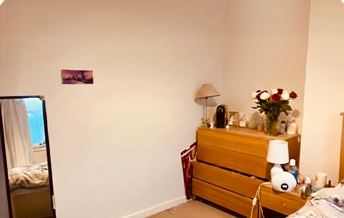 The room is on the first floor at the front of the house overlooking our pretty street! It is a double room with a built in wardrobe area. A desk and chest of drawers will also stay.