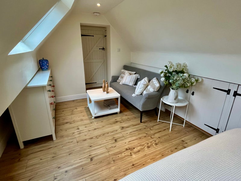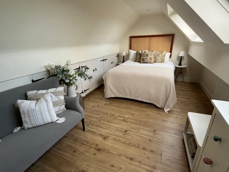 This is a lovely very large double bedroom with a separate seating area. Very nicely presented room with lots of storage, a king size bed and a very nice large bathroom shared with just one other person.
