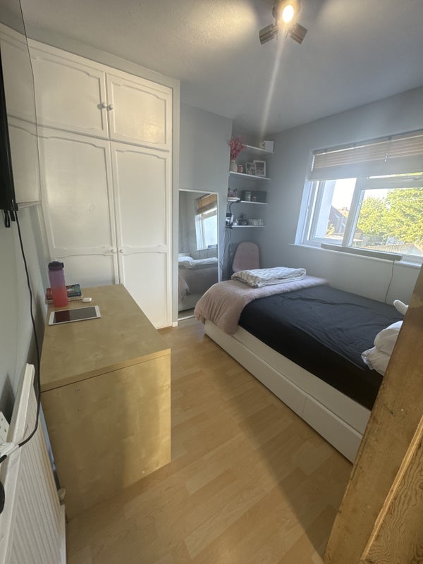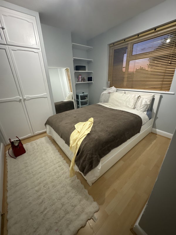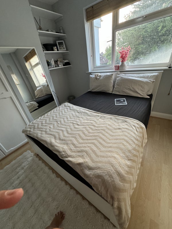 This lovely, fully furnished double room features a brand new IKEA double bed with four spacious under-bed storage drawers – perfect for keeping things tidy. The room also includes built-in wardrobes and open shelving, offering plenty of storage space for clothes, books, and more.