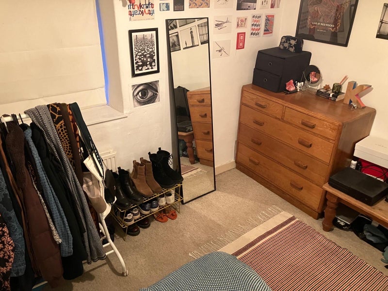 Monday to Friday, £640 including bills. If you would like, some weekends can be incorporated. The available room is a double bedroom on the top floor, with a window overlooking houses and the road.