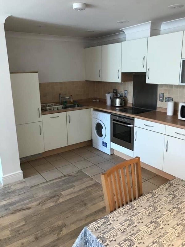 Flat Details: Fully kitted out kitchen, dinning room, and living room. Washer/dryer in unit. Storage closets in hallway.