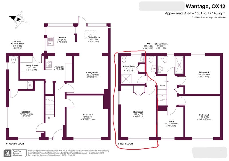 - Large Double bedroom & en-suite shower room (circled red in floorplan)