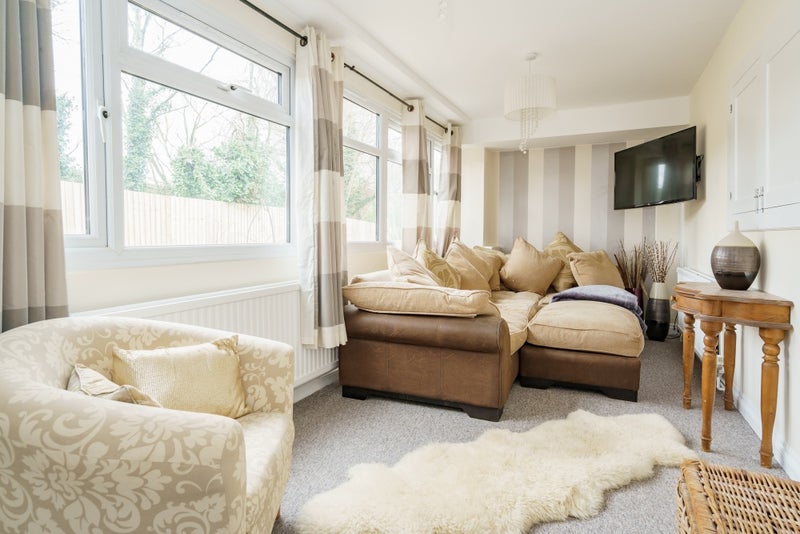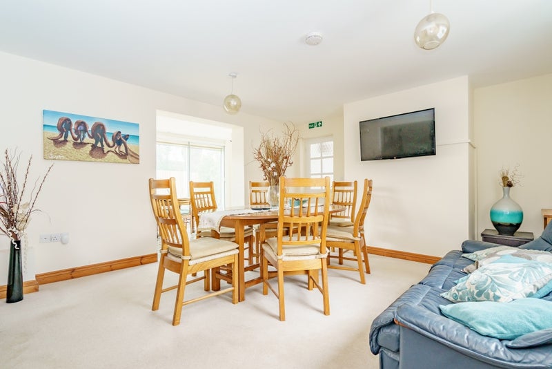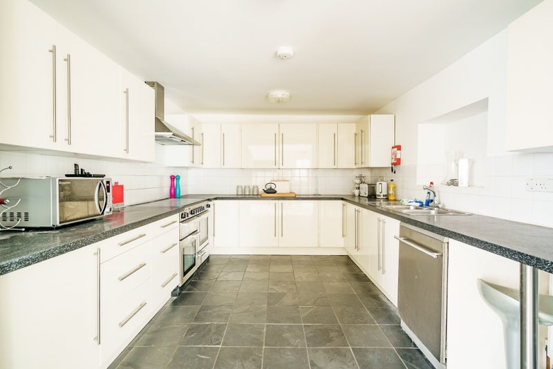 Communal areas consist of open plan reception room and large modern kitchen with appliances, second reception room with dining table and patio doors that lead to the garden.