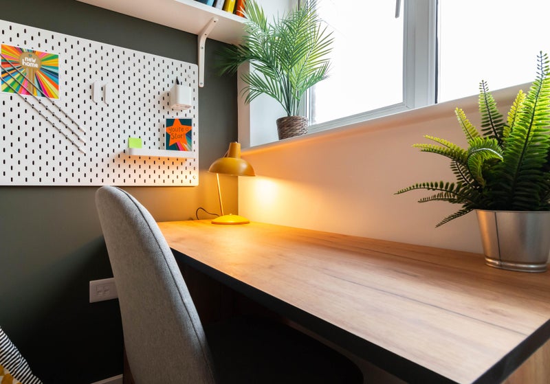 • Dedicated workspace (desk + chair)