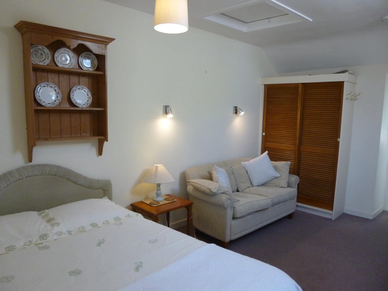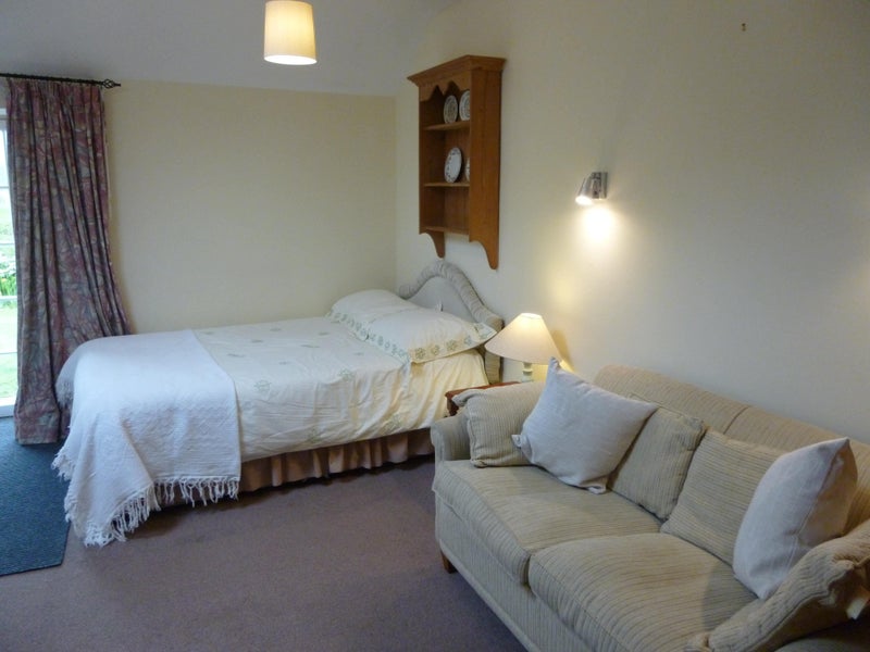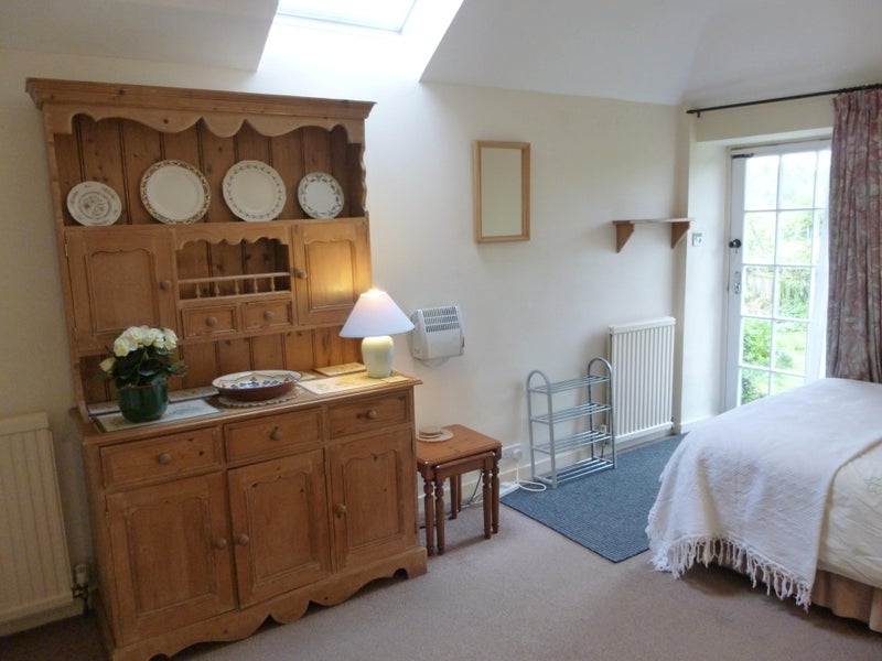 Good sized room with en-suite and access to cooking facilities and washing machine. Use of large country garden and off-street parking. Car essential. Our hens and ducks will lay eggs for your breakfast.