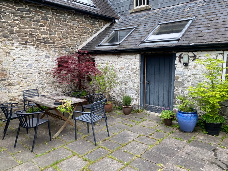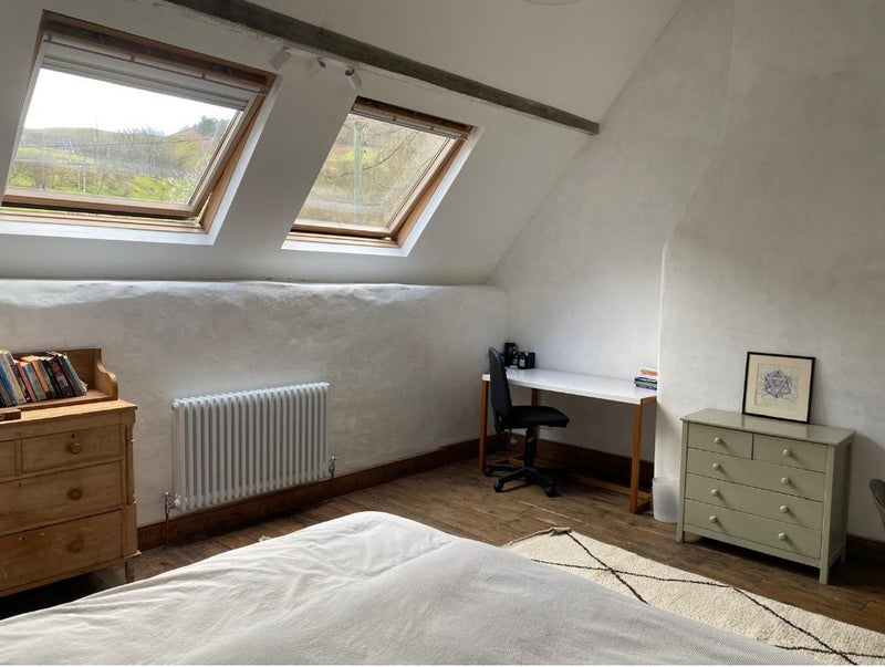 Huge bedroom and own living room within the old bake house part of our beautiful farmhouse set in stunning hills, conveniently set just off the A470, with great walks from the house. 5 minutes' drive from the vibrant town of Llanidloes, half an hour from Machynlleth and Rhayader.