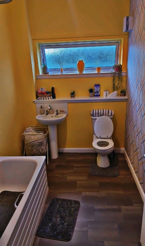 Spacious modern flat in quiet area with great amenities and transport links to glasgow paisley ans dumbarton clydebank and the hospitals . Private parking