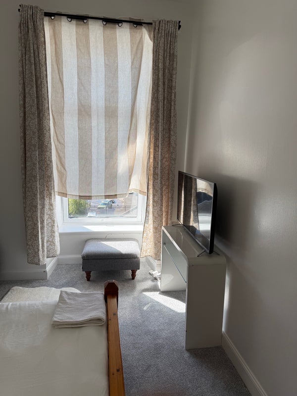 A clean, newly decorated private room available in a quiet 2-bedroom flat in Renfrew, just minutes from Glasgow Airport.