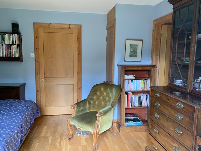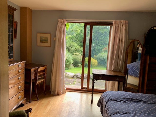 This room would particularly suit an artist or writer or somebody doing research, for example, It is very peaceful and quiet. There is a large and beautiful garden, bordering woodland with a river running through it.