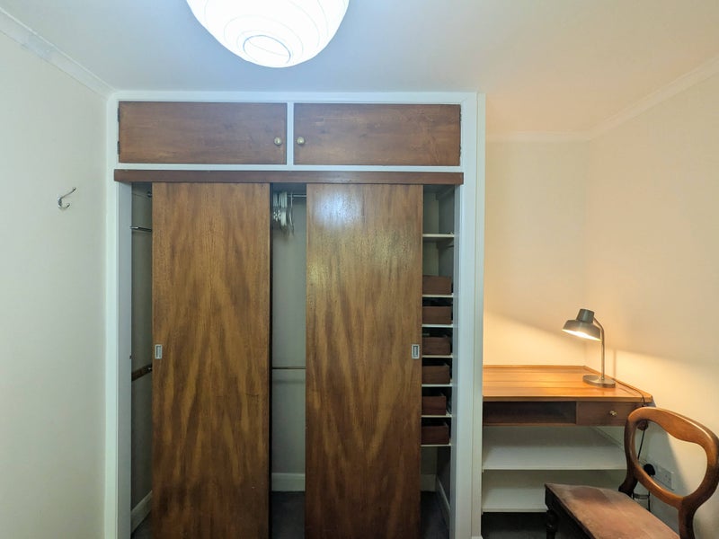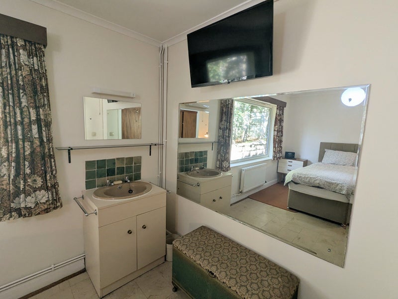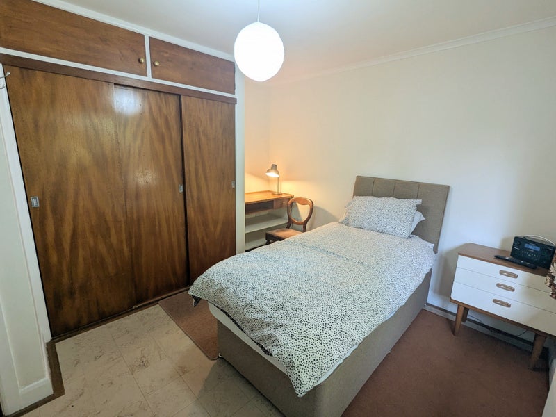 Quiet room in shared house with generous cupboards, desk, sink, shaver socket & TV.
