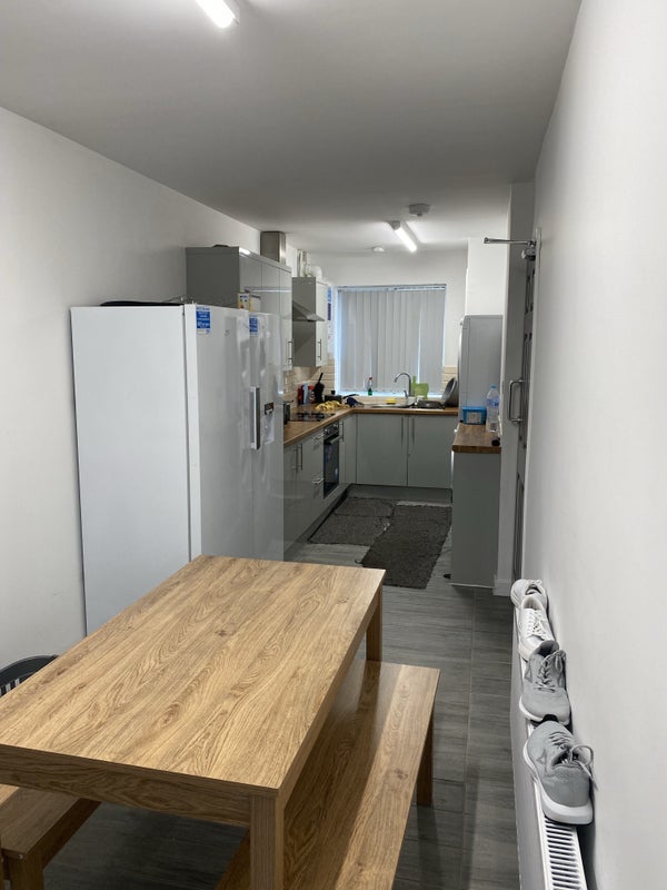 This wonderful house share also includes a modern fitted kitchen with an arrangement of base and wall mounted units, oven with hob, toaster, kettle, microwave, and stylish table and chairs which makes it great for socializing and relaxing.