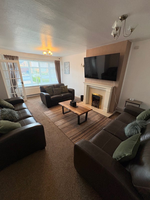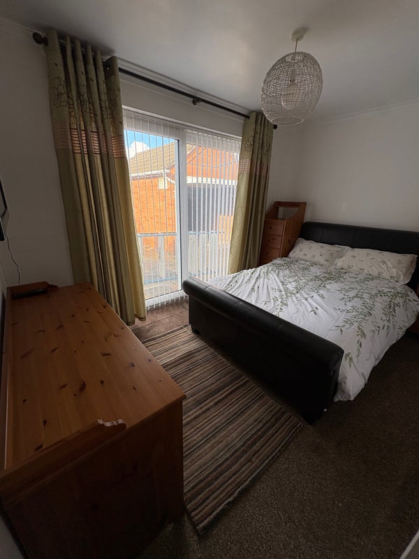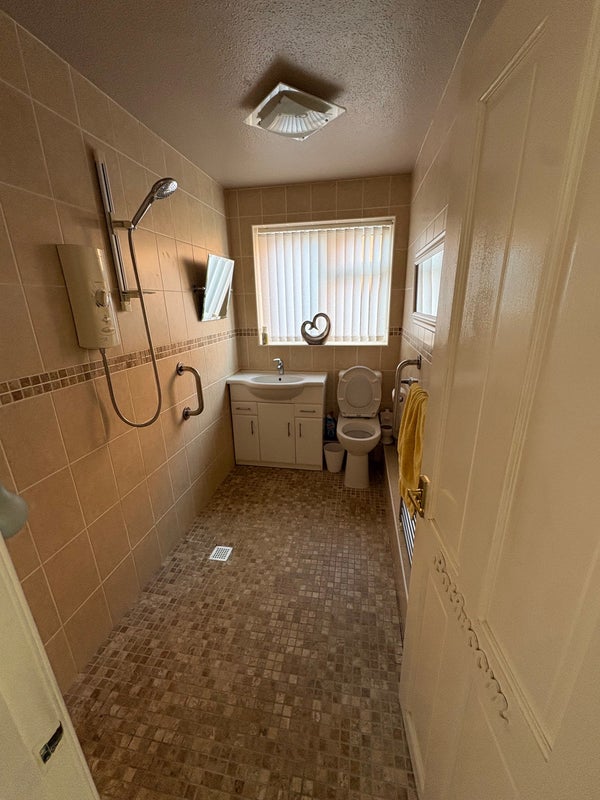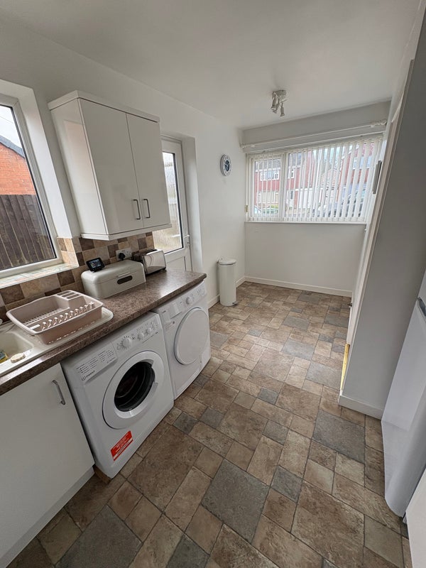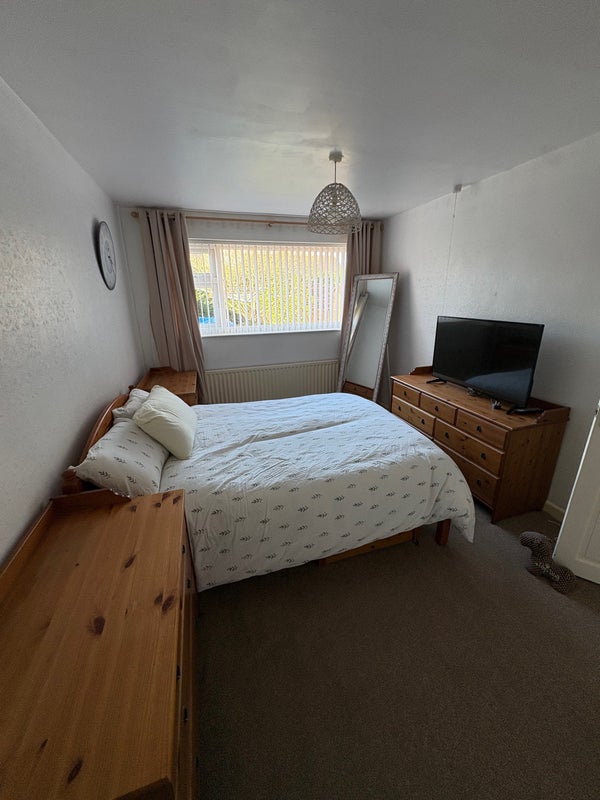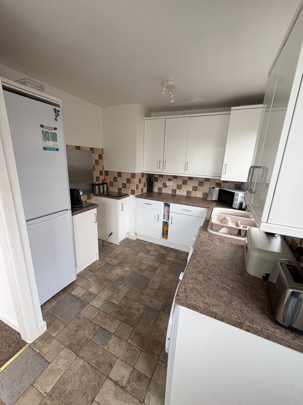 Shared kitchen and living room, garden, patio area and shed, parking on drive.
