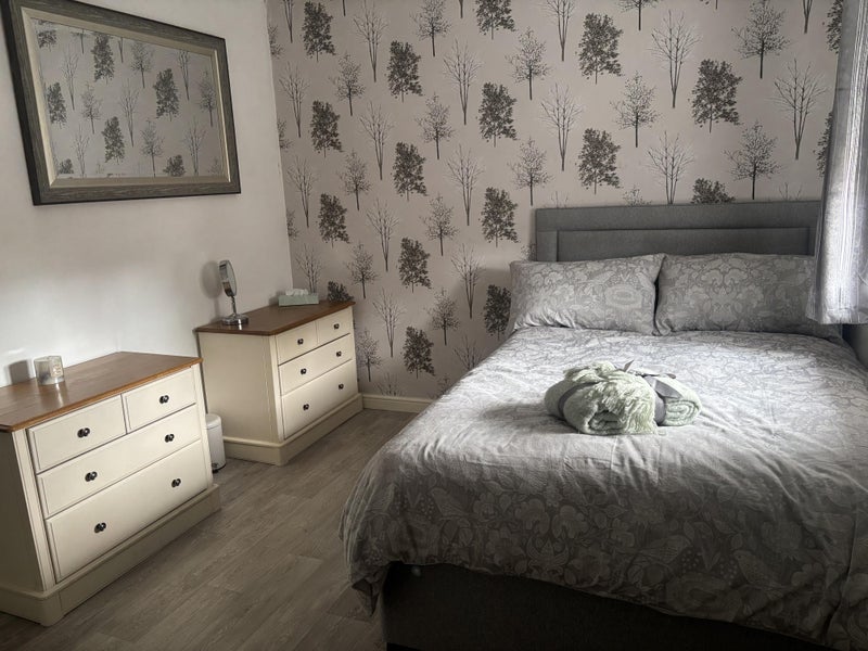 A spacious double room in a 2 bedroom house hold, brand new bed, built in wardrobe, storage under bed and 2 chest of draws. Modern kitchen with washer, dryer and dishwasher