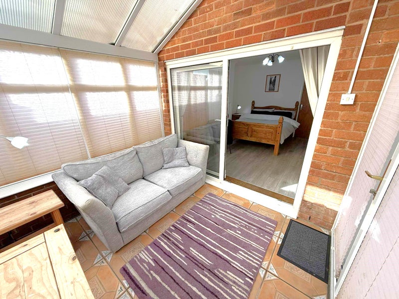 A beautifully furnished huge ground-floor double bedroom, with its own adjoining private conservatory/sitting room which has a modern and contemporary feel with bags of charm and style.