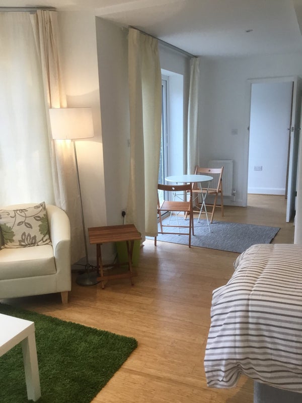 This studio has its own shower room, sitting area, dining table and includes a fridge, kettle and microwave. There is even a separate entrance.