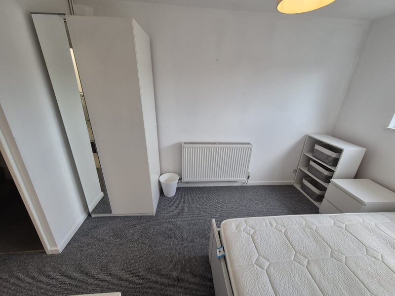 We have a large double ensuite room in a recently refurbished shared house. The room has a ensuite (with shower, WC, basin). In the actual room there is a double bed, good sized wardrobe, chest of drawers, side draws, cupboard and mirror however these can be swapped in and out as requested.