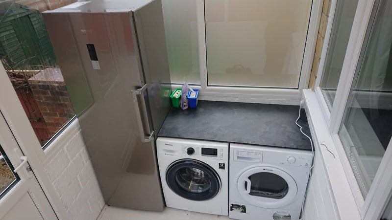 The communal space consists of a separate kitchen with large fridge and dishwasher; large open plan dining area/lounge; utility room with large freezer, washing machine and tumble dryer; small, low maintenance garden.