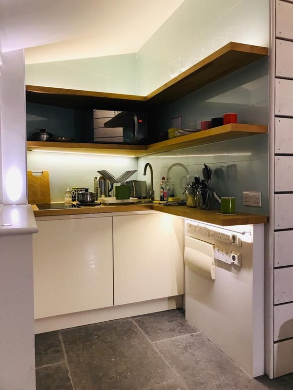 The kitchen has a two ring hob, microwave oven, fridge with freezer section and all crockery and utensils so everything you need.