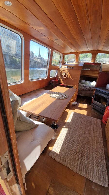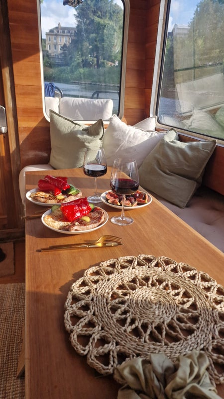 Note: Access is a bit tricky — the boat currently sits a little lower on the river. Over winter, the water level rises, which makes it easier to get on and off. Totally doable, just requires abit of flexibility.