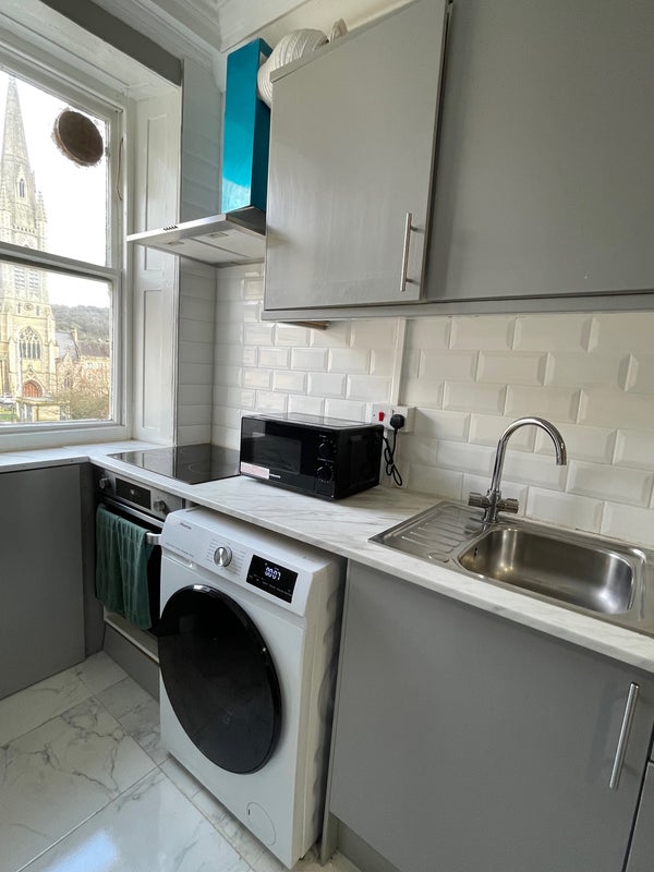 The property is fully equipped with 2im1 washing machine/dryer, fridge, microwave, kettle, toaster, oven and induction hob. Plenty of cupboard.