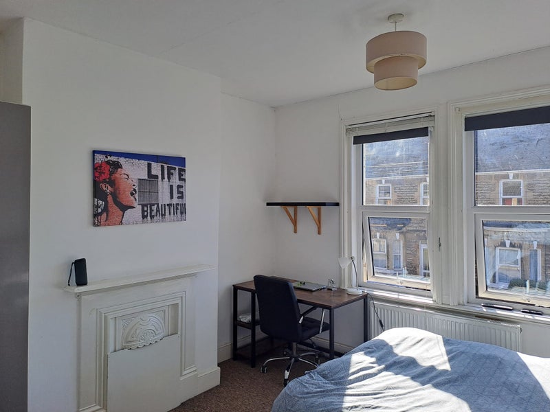 Large double room available in Oldfield Park, near Moorland road, close to all amenites. The house is close to bus stops, a 5 min walk to Oldfield Park train station, 15 min walk into town and on street residential parking (RPZ).