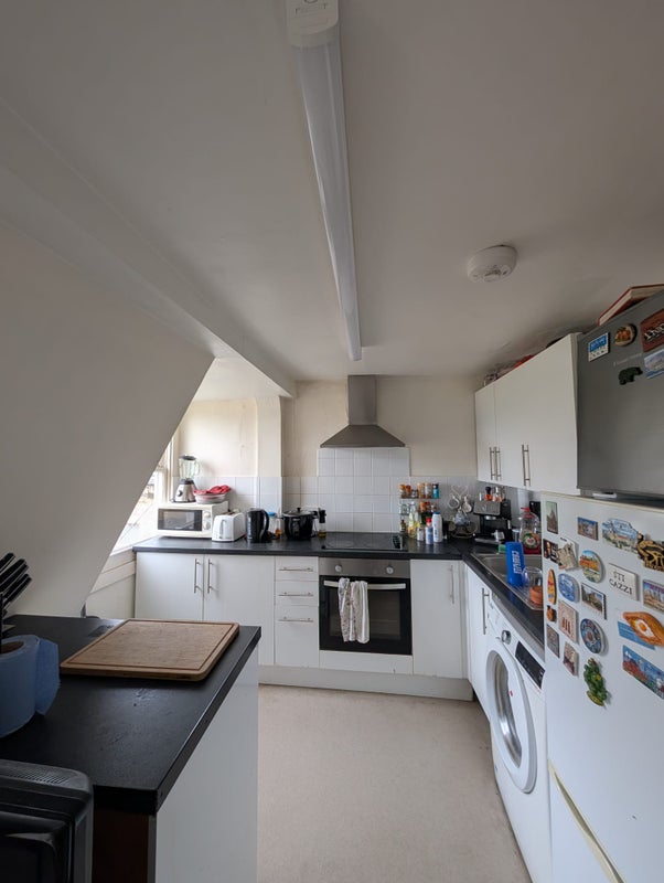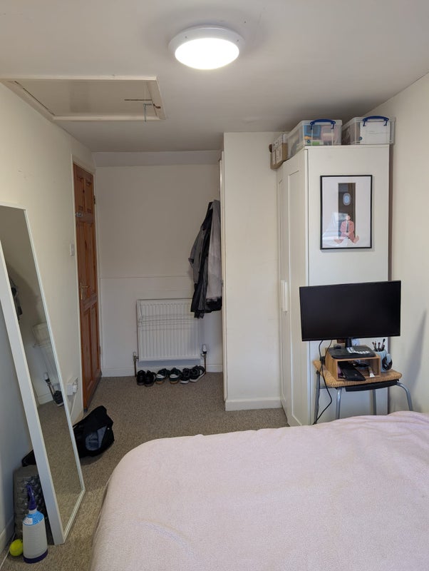 This room is in a 3 bed, 1 bathroom flat with a shared kitchen/living room. It comes furnished with a double bed with under storage and a wardrobe (bookshelf and bedside tables in images not featured).