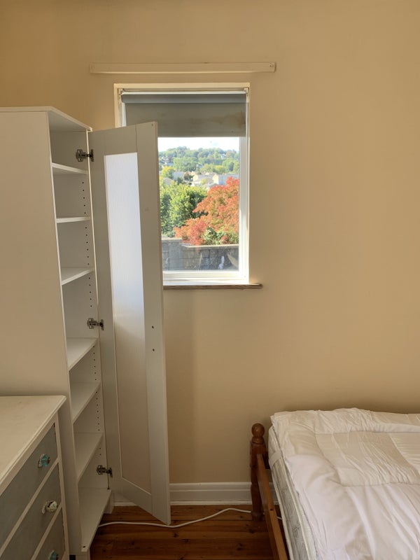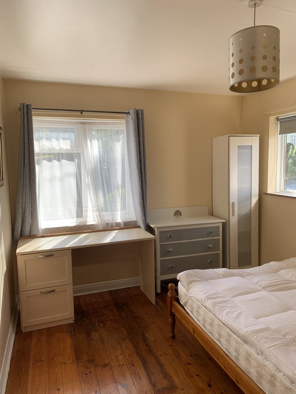Furnished double bedroom (double bed, wardrobe, cupboard, drawers and desk) in very clean and comfortable home. 20 minutes walk from the city centre, easy parking and a bus stop to town right outside the house. Countryside to the rear. There’s a garage suitable for bikes and a large undercroft for storage. There’s a balcony area and a large garden.